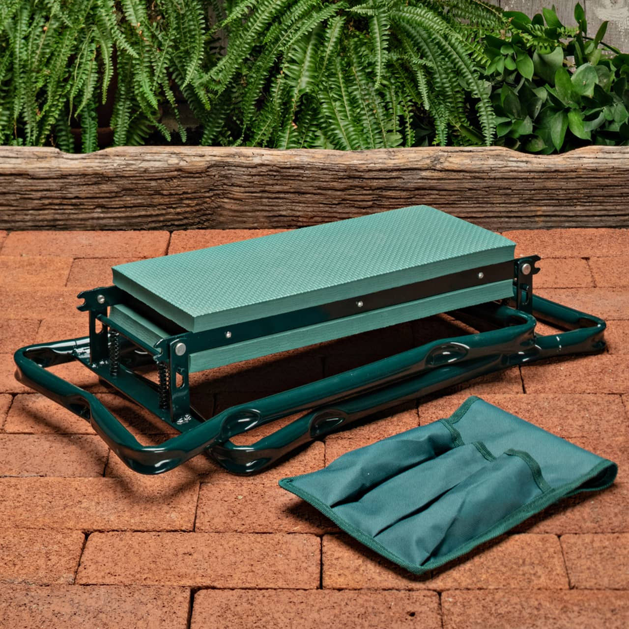 Designed for comfort and strength, this upgraded foldable bench features a thick, wide cushion and a heavy-duty frame that supports up to 330 lbs. Whether you're working, organizing, or resting, the soft pad reduces pressure while the sturdy design keeps you stable. Comes with two detachable side pouches for quick access to tools or essentials. Folds flat for easy storage.